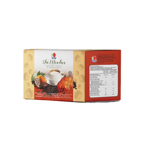 A DXN Zhi Mocha a Linghzi kávé egyik típusa, melyet a kávé azon szerelmeseinek készítettünk, akik a csokoládét is kedvelik. Az aromákban gazdag Zhi Mocha válogatott kávészemekből készült instant kávépor, ganodermakivonat és kakaópor keveréke.